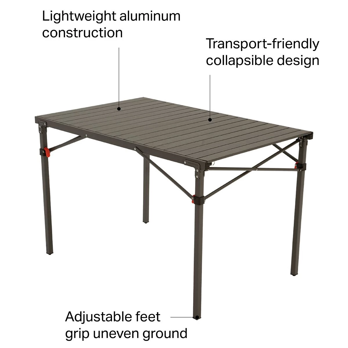 - Adjustable feet grip uneven ground to limit wobbling and shaking