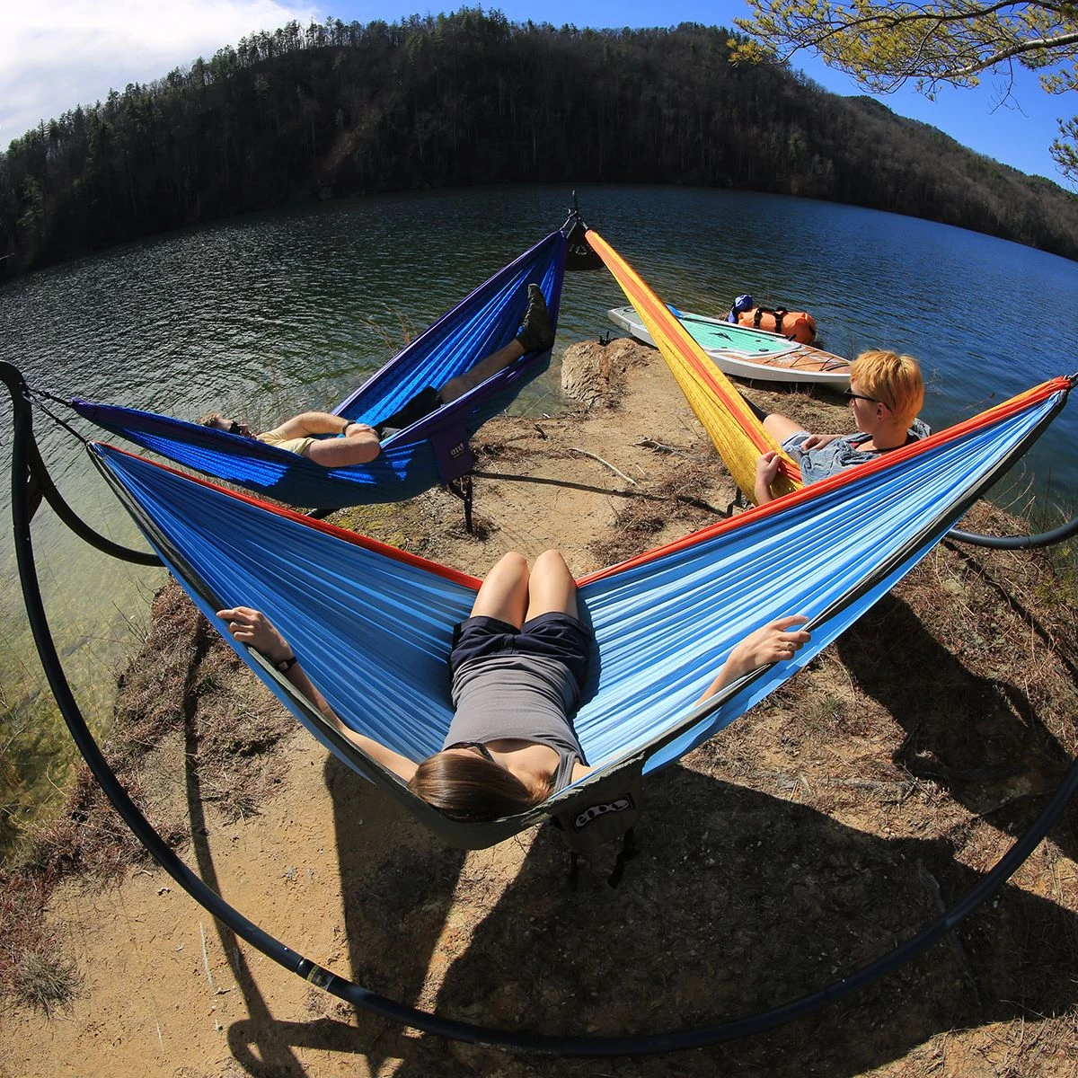Eagles Nest Outfitters’ portable, versatile, and durable ENOpod Hammock Stand accommodates three hammocks for all our camping, napping, and even music festival needs. Its quick-release construction lets us move from one venue to the next in seconds, and each piece fits in the back of our car without a problem.