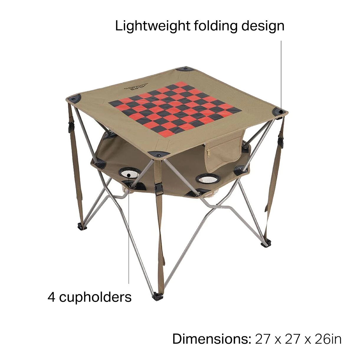 Itβs hard to beat a family night of games at the campsite, and the Eclipse Table + Checkerboard is an awesome addition to our family camping trips. It has two levels, one for the games and one for the food and drink. That means we don’t have to worry about slapping over the chips bowl when celebrating a glorious victory.