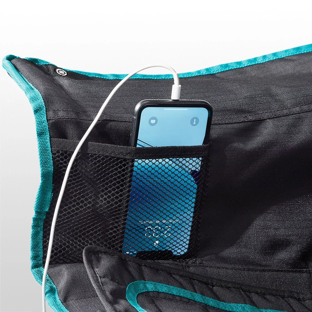 The Onesource Heated Chair makes cheering on our kid’s ballgames in the bitingly cold temperatures a pleasant experience, thanks to the 4 levels of blissful heat that radiate from the seat’s pad and the no-gap armrests that block out the cold wind. As the evening goes on, we use the convenient charging port to keep our phone ready to snap some team championship photos before packing up.